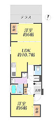 2LDKの間取りの中には、住戸内に階段を設けている2階建てタイプのメゾネット型もあります。デザイナーズマンションでよく見られる間取りですが、下の階にLDKとお風呂、トイレなどの水回りを配置し、上の階に2つの居室を配置している間取りが一般的です。