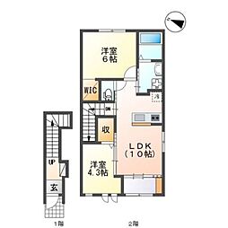 2LDKの間取りの中には、住戸内に階段を設けている2階建てタイプのメゾネット型もあります。デザイナーズマンションでよく見られる間取りですが、下の階にLDKとお風呂、トイレなどの水回りを配置し、上の階に2つの居室を配置している間取りが一般的です。