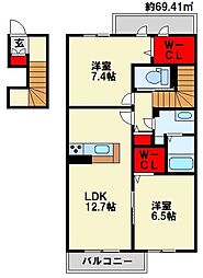 賃貸 アパートシティーフィールド2 B棟 B0101