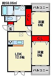 賃貸 アパートシティーフィールド2 B棟 B0101